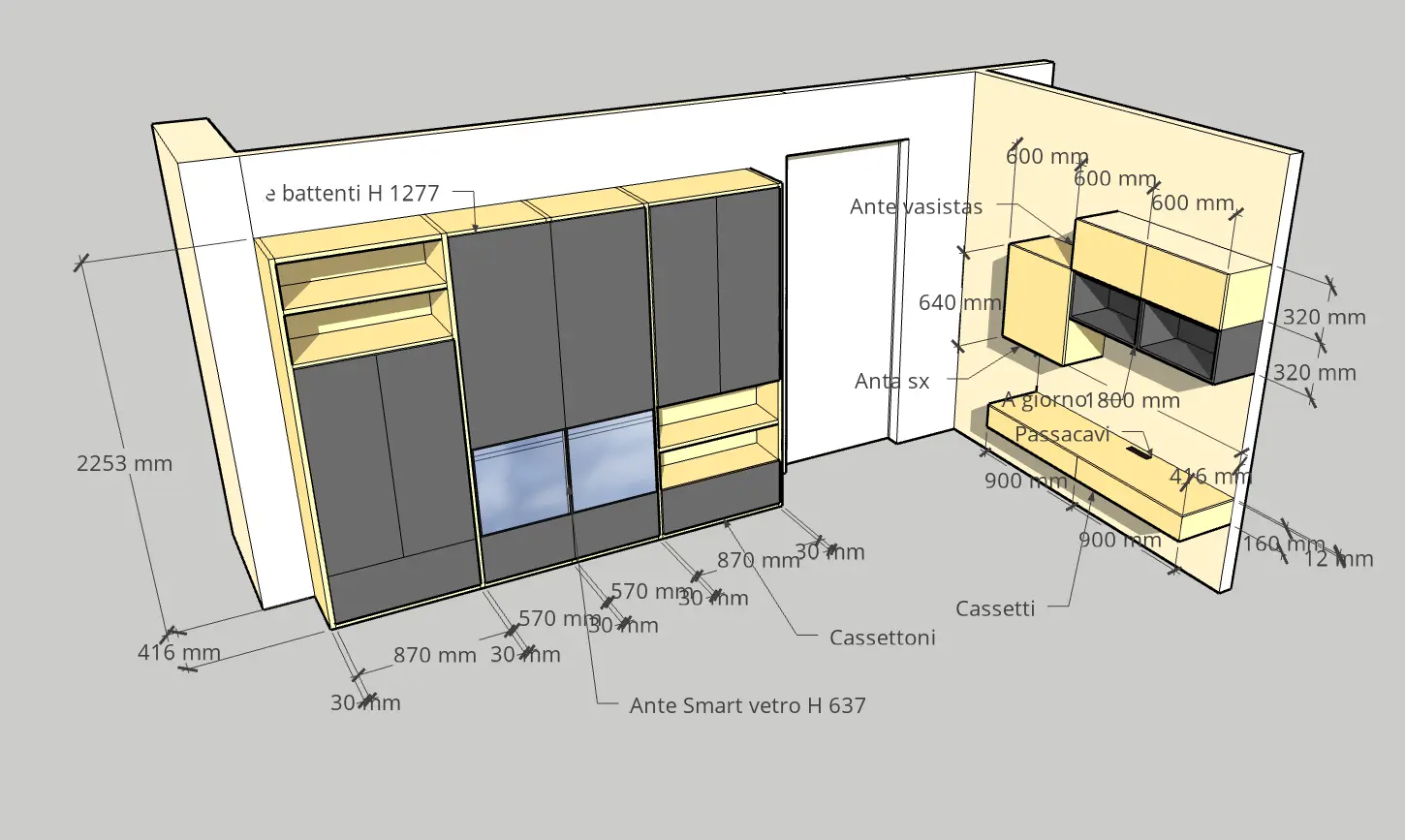 Una particolare attenzione è posta al disegno di elementi a misura che possiamo ideare, progettare e costruire grazie alla collaborazione con varie aziende del settore.